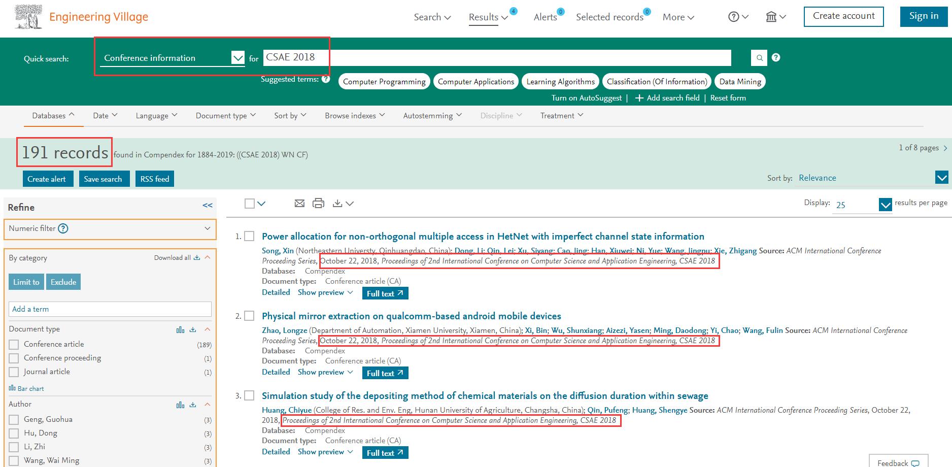 The proceedings of CSAE2018 were published by ACM International Conference Proceedings Series on October 22, included in ACM digital library, and indexed by EI, CPCI and Scopus successfully.