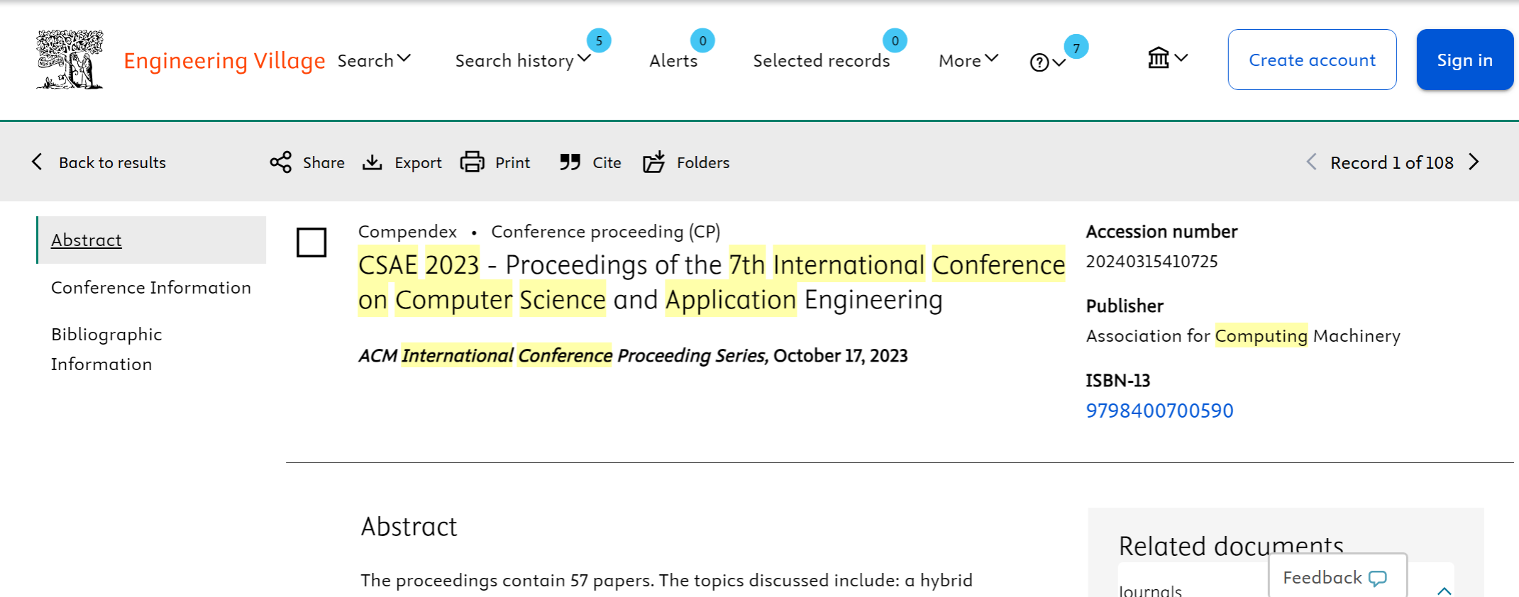 The proceedings of CSAE2024 were published by ACM International Conference Proceedings Series on January 20, included in ACM digital library, and indexed by EI and Scopus successfully.