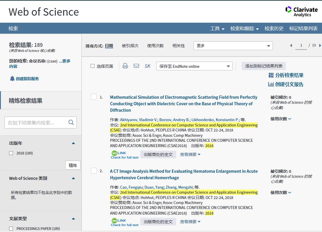 The proceedings of CSAE2018 were published by ACM International Conference Proceedings Series on October 22, included in ACM digital library, and indexed by EI, CPCI and Scopus successfully.