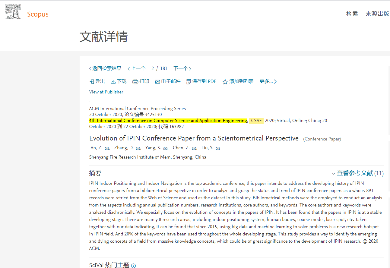 The proceedings of CSAE2020 were published by ACM International Conference Proceedings Series on October 22, included in ACM digital library, and indexed by EI and Scopus successfully.