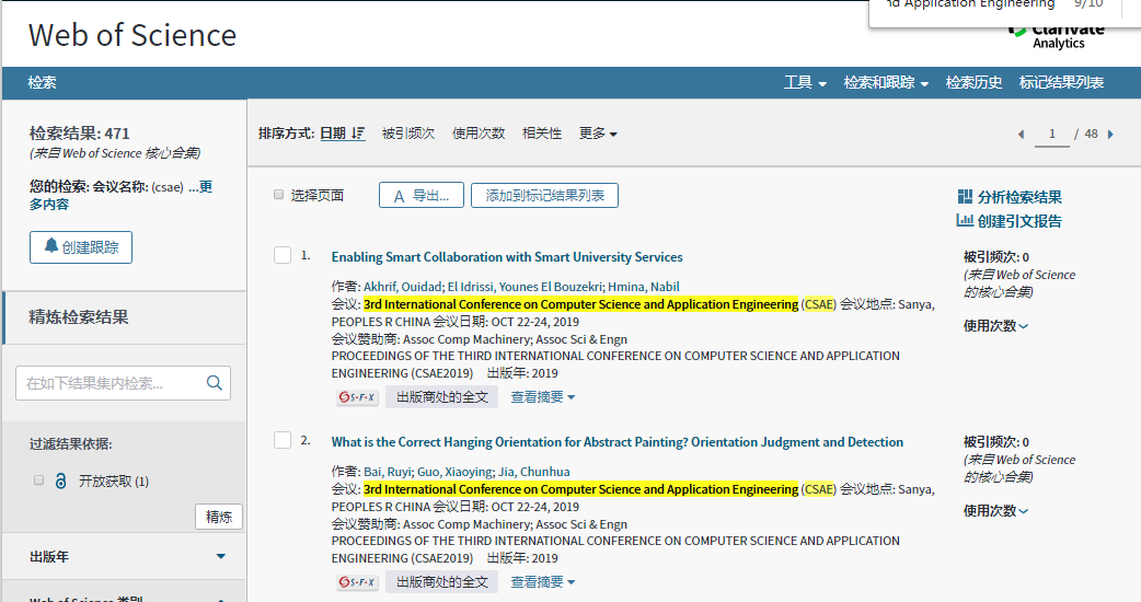 The proceedings of CSAE2018 were published by ACM International Conference Proceedings Series on October 22, included in ACM digital library, and indexed by EI, CPCI and Scopus successfully.